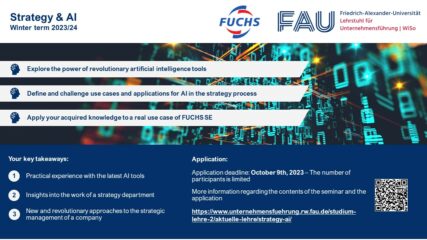 In the winter term, the Chair of Corporate Management is offering the exciting and new practical seminar Strategy and AI in cooperation with FUCHS SE.